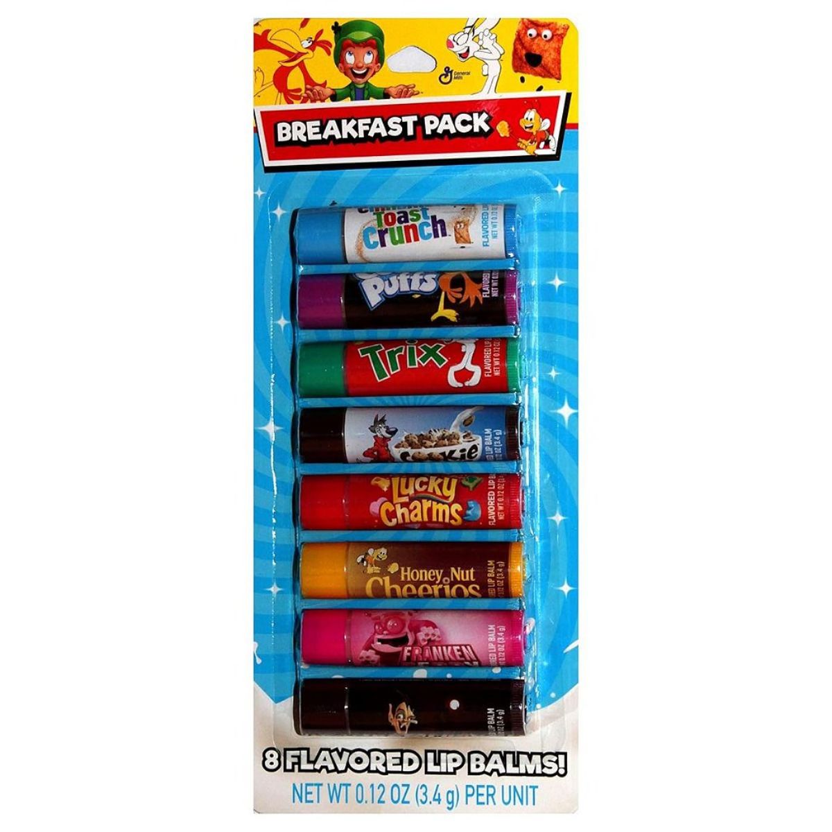 Sabores: Cinnamon Toast Crunch, Cocoa Puffs, Trix, Cookie Crisp, Lucky Charms, Honey Nut Cheerios, Franken Berry, Count Chocula.