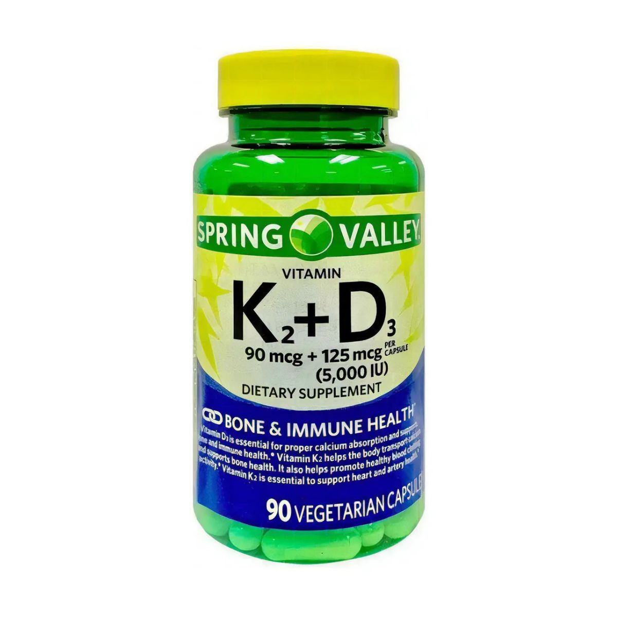 Cápsulas vegetarianas de vitamina K2 + D3 Spring Valley, 5000 UI, 90 unidades: