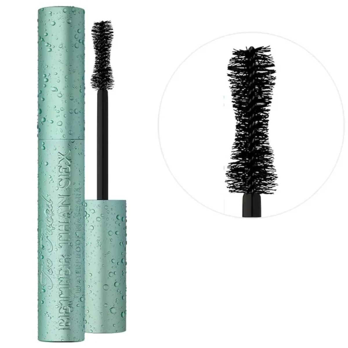 Máscara para cílios à prova d'água preta. Too Faced Better Than Sex Waterproof oferece volume, alongamento e curvatura extrema.