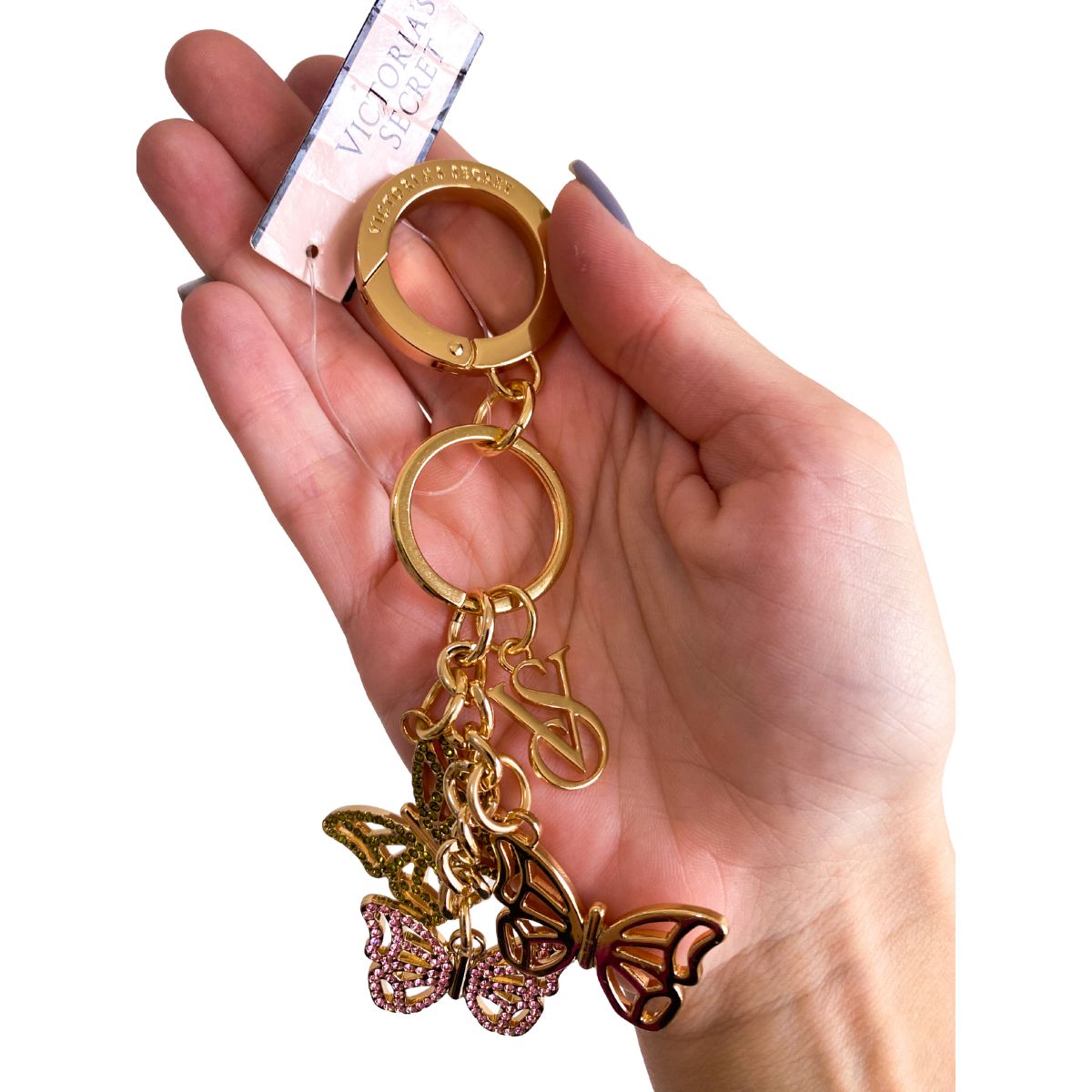 Perseguindo borboletas. Este delicado pingente para bolsa adiciona um toque mágico a qualquer lugar onde você o coloque e é perfeito para manter seus itens essenciais sempre à mão.