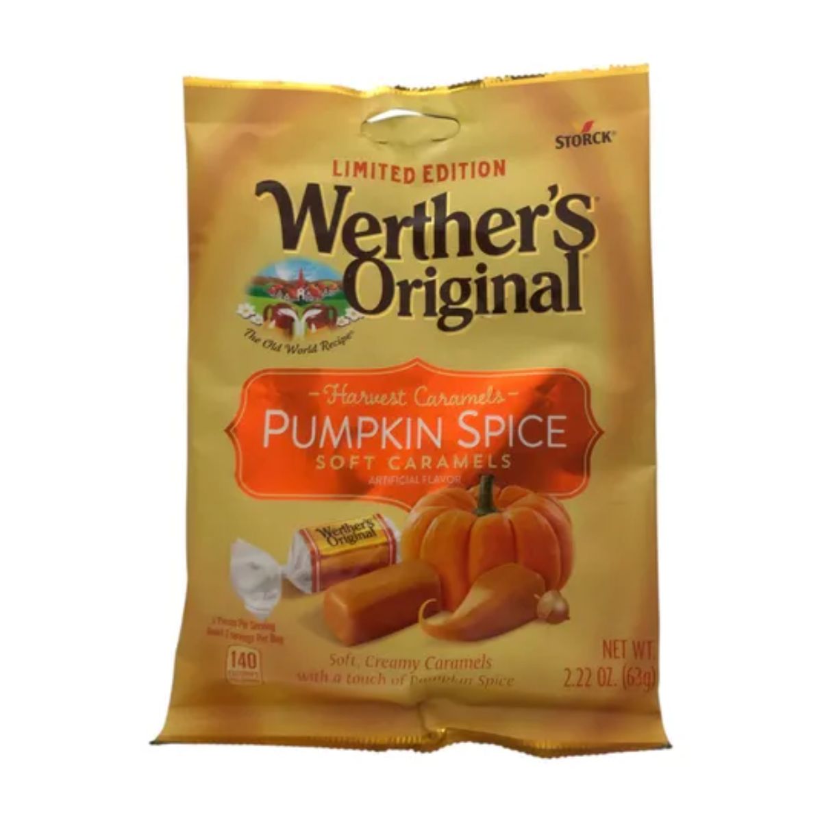 NOVAS Balas Macias de Especiarias de Abóbora Caramelizadas Originais da Werther's Peso Líquido 2,22 Oz